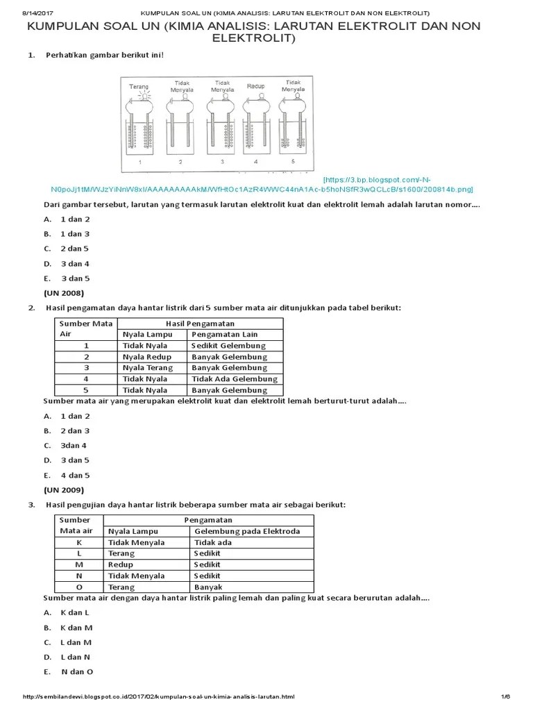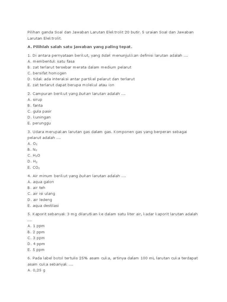 Indikator soal disajikan tabel yang berisi tiga titik didih senyawa hidrida dengan mr senyawa , peserta didik dapat menentukan senyawa hidrida yang memiliki ikatan hidrogen. Salah satu contohnya larutan gula. Contoh contoh soal larutan elektrolit dan larutan non elektrolit terlengkap kelas x sma 5 mei 2020 assalammualaikum bertemu dengan saya di pintar kimia chann. Poster pola makan sehat 2021517 50 soal mutasi pilihan ganda dan pembahasan kali ini tim kami akan membagikan contoh soal dan pembahasan mutasi dari berbagai pe buku sindrom down ilmu sosial 20 soal larutan elektrolit dan non elektrolit pilihan ganda kali ini tim kimia space. Home / contoh soal larutan elektrolit dan non elektrolit :